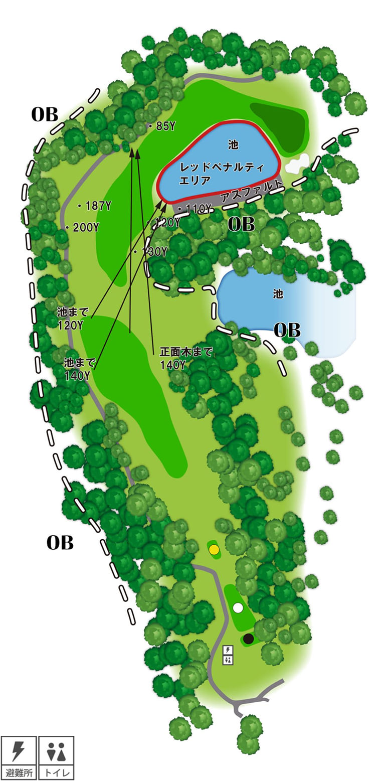 全体的にフェアウェイはフラットだがトリッキーなホールからなる。