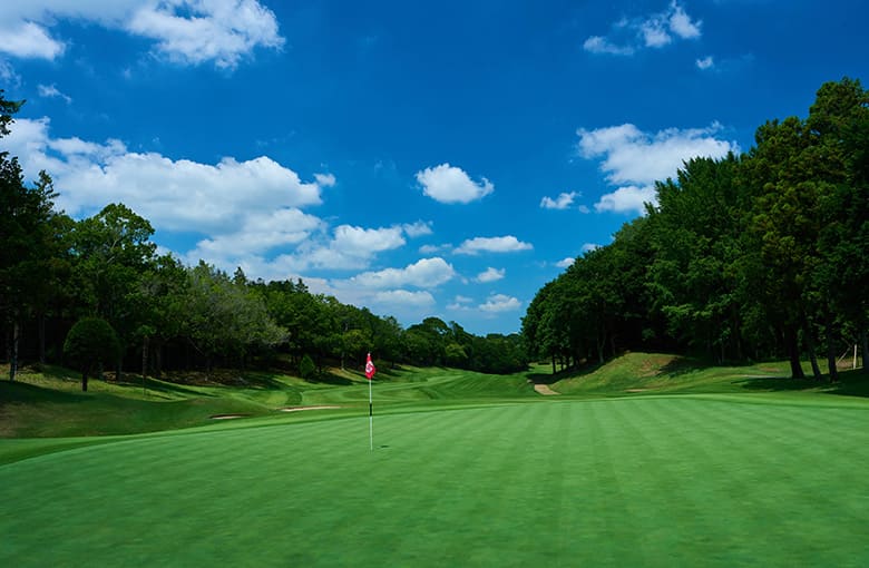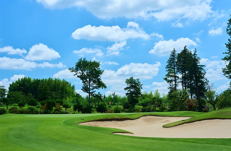 • ティーショットはバンカー右側が狙い目。 グリーン右手側にガードバンカーがある。 バンカー左側から攻める。