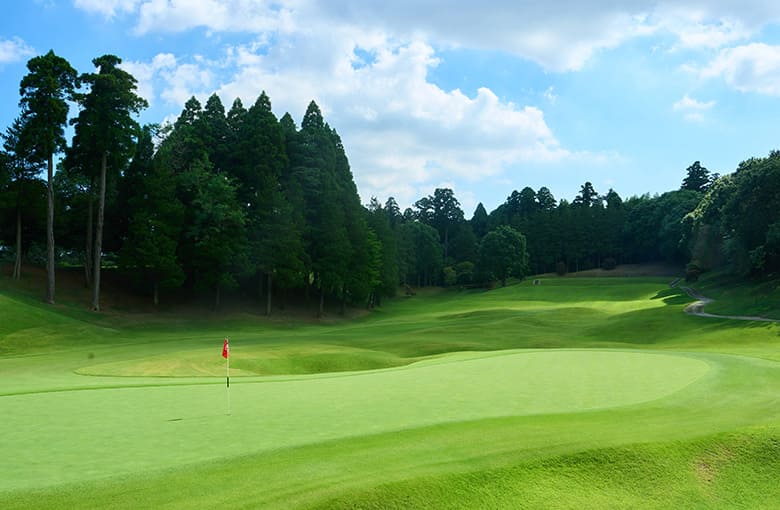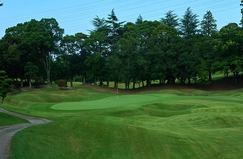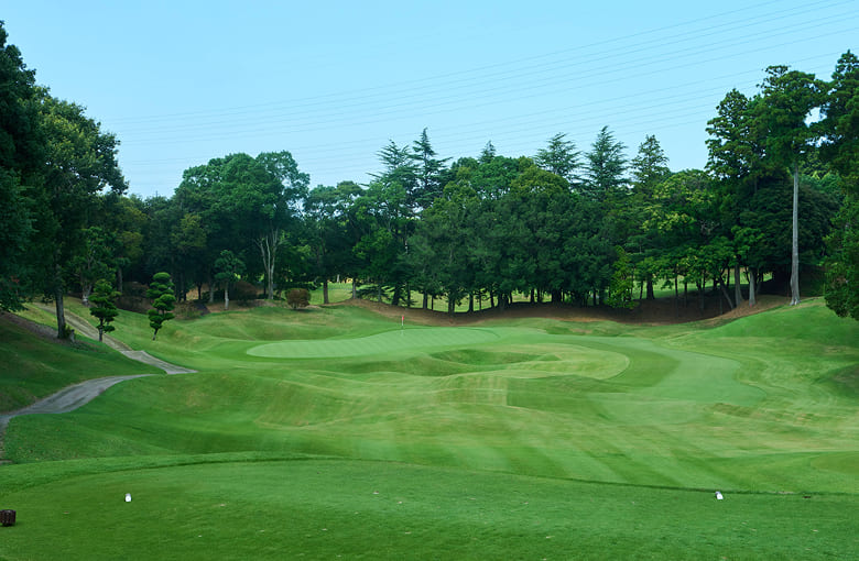 • 打ち下ろしのショートホール。 右に細長いグリーンの為、正確な距離が必要。 前後深めのグラスバンカーあり。