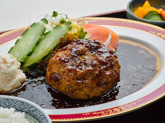 店舗で手捏ねしている自家製ハンバーグ。とてもやわらかい仕上がりです。